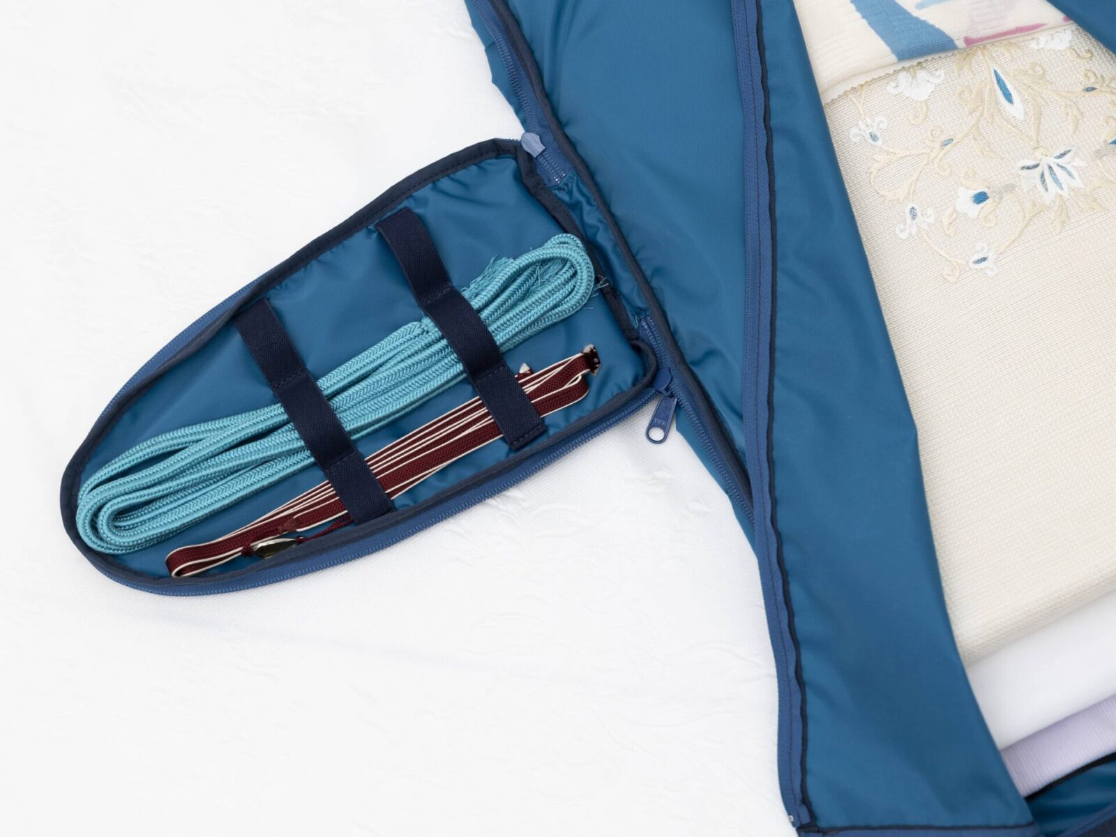 細部には、帯締めを留めるゴムやキャリーオン機能を装備。