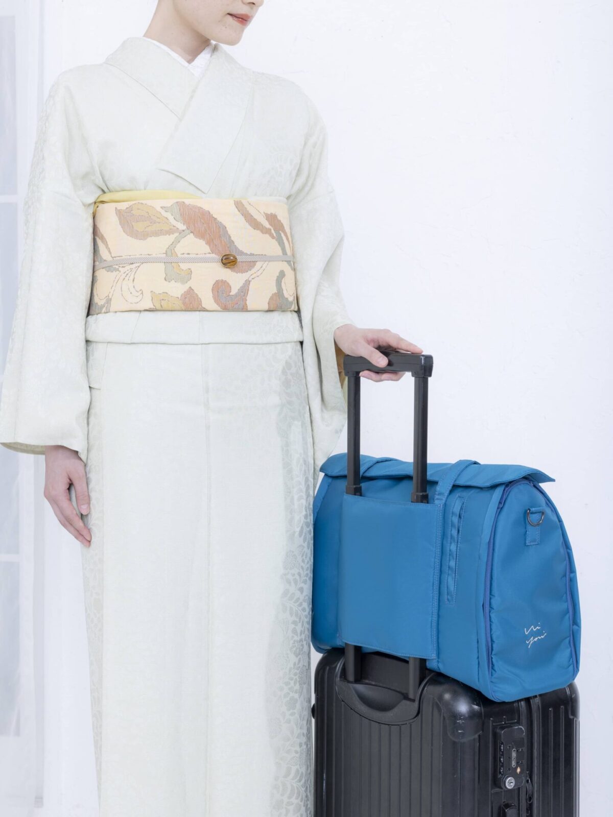 着物一式を納める大容量でありながら、見た目はとてもコンパクト。洋服での一泊旅行にも対応する多様な装いに寄り添うデザインです。