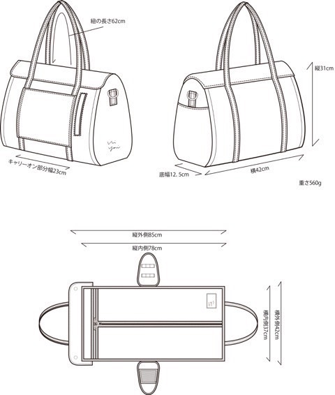 キャリーオン部分幅:23cm ショルダーベルト:57cm~77cm