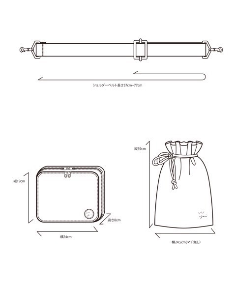 バッグ、ポーチ、巾着のセット販売となります。