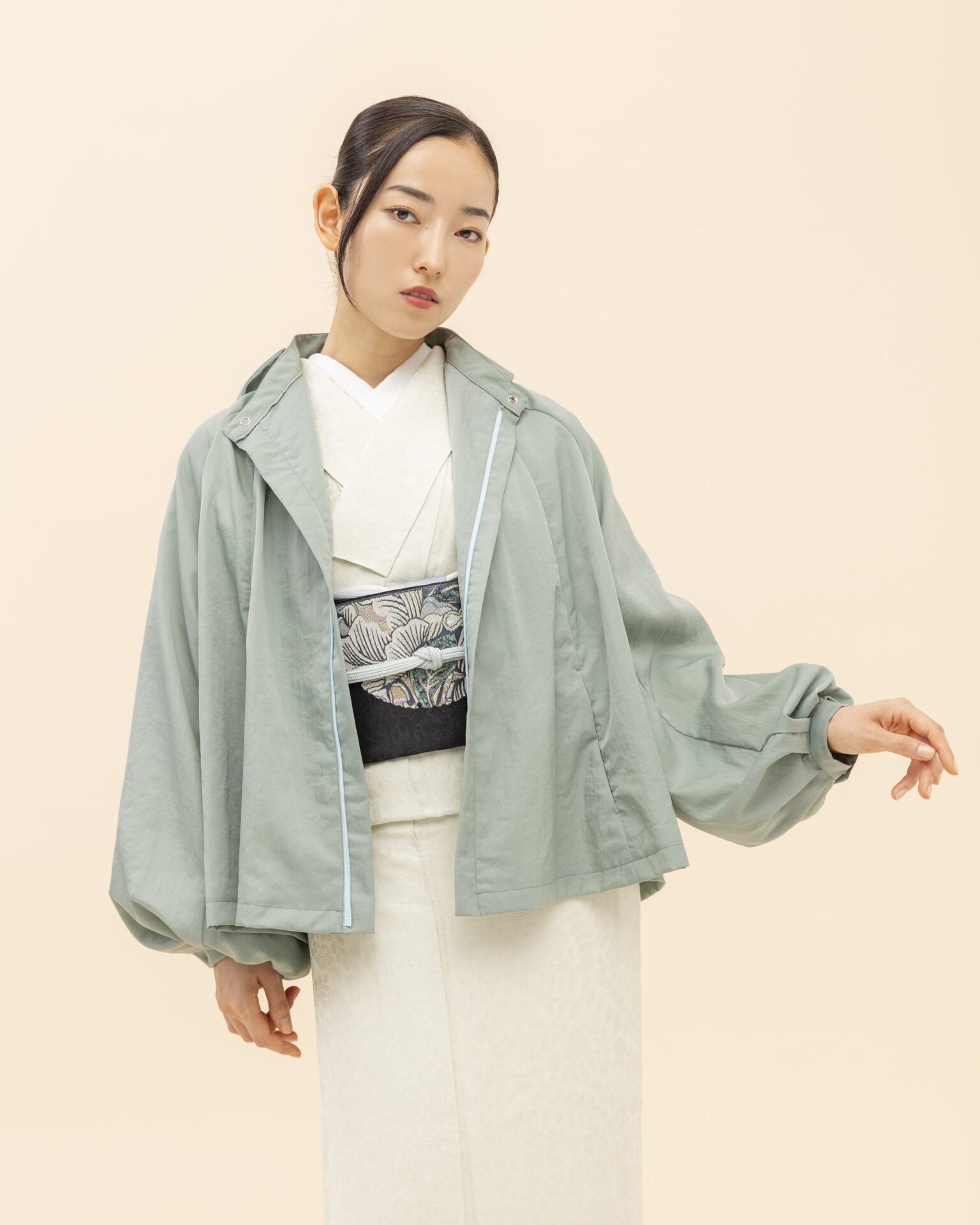 お茶会では、ni yori2023年の新作である雨コート(名前は未定)の現段階のサンプルもご紹介しました。
